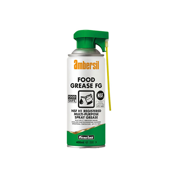 Grasa en spray NLGI 2 para lubricación de piezas metálicas deslizantes en la industria alimentaria. Registro NSF H1. De -20º a 140ºC. (picos de 180ºC). Grasa blanca NLGI tipo 2, espesada con complejo de aluminio. Excelente resistencia a la humedad con muy poca eliminación por lavado con agua. Rango de temperatura operativa: -20 °C a +140 °C. Aerosol 400 ML